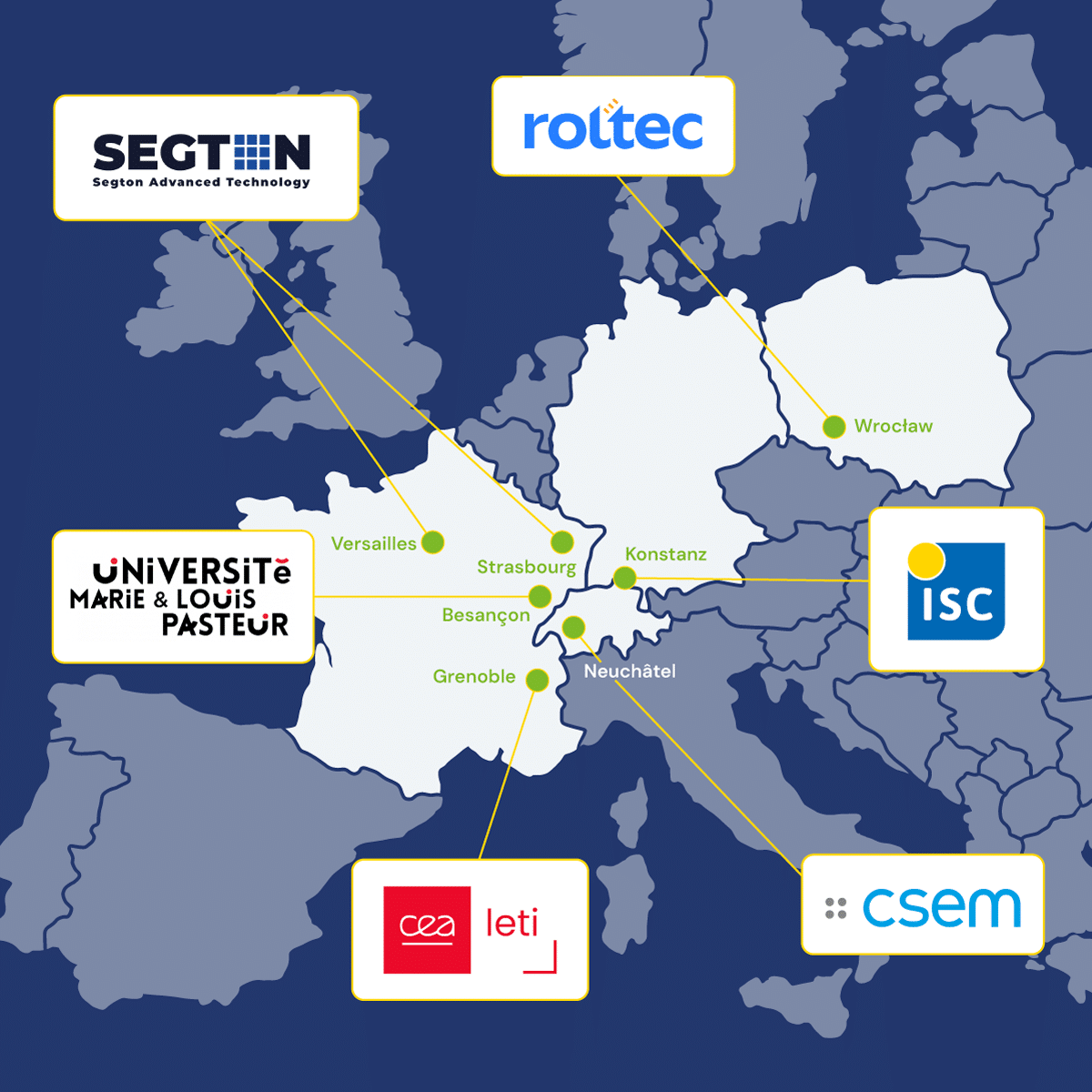 Our Low-Energy Electron Multiplication (LEEM) technology leverages nanostructuring techniques derived from the microelectronics industry. Using Segton® units (engineered divacancy structures), it enables secondary electron generation, enhancing efficiency beyond the Shockley–Queisser limit. The process requires only two additional steps (ion implantation and annealing) which can be seamlessly integrated into existing solar cell manufacturing lines.